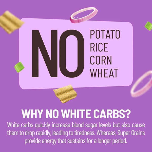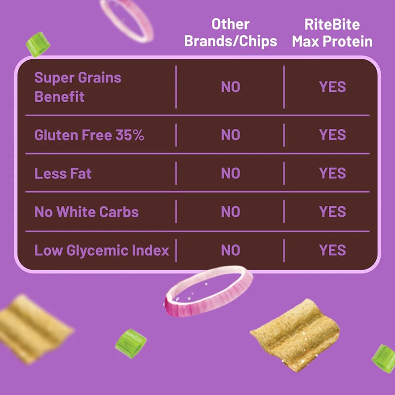 - Max protein is made from Gluten Free Super Grains like Sorghum (Jowar), Quinoa, Oats, Ragi and flavoured with delicious Cream & Onion Masala.