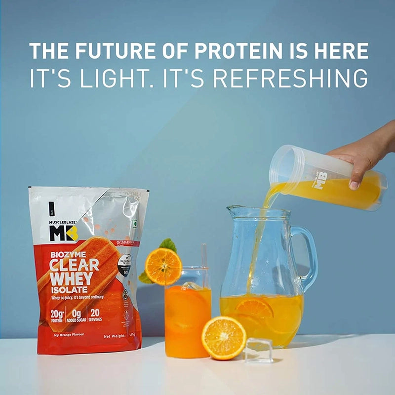 MuscleBlaze Biozyme Clear Whey Isolate, 540 g (1.19 lb), Icy Orange