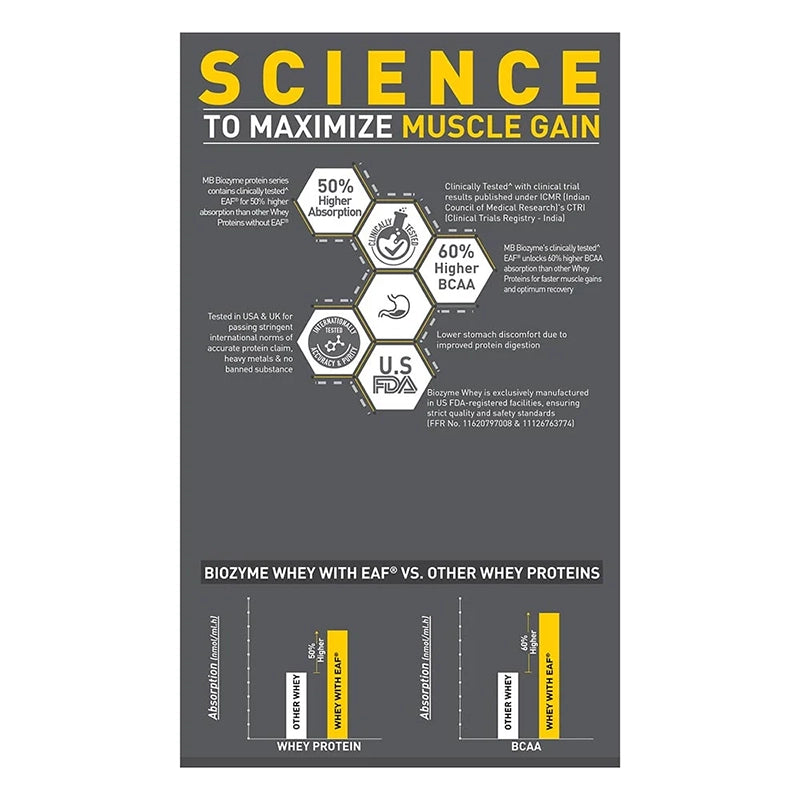 It’s a part of MB’s pioneering innovation- the BIOZYME series. The other fitness supplements in this iconic series are Biozyme Performance Whey & Biozyme Whey Protein.