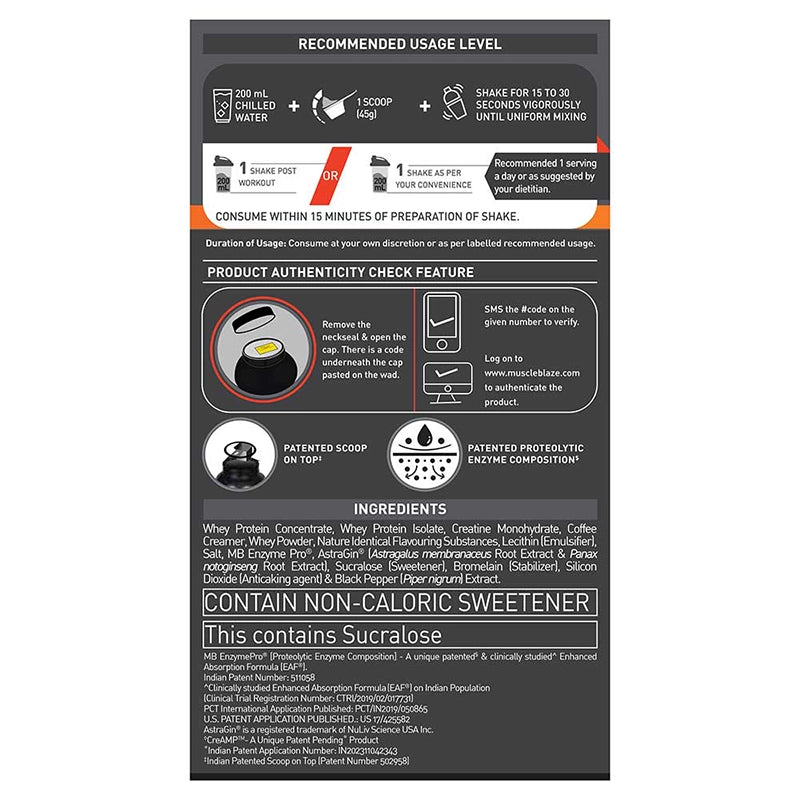 MuscleBlaze Biozyme Whey PR is crafted exclusively for fitness and muscle-building champions who want their protein supplement to be as effective as their efforts. It is scientifically designed with a powerful trio of Biozyme Whey, Creatine Monohydrate & AstraGin® that lets you perform better & helps you break your personal records. It’s a part of MB’s pioneering innovation - the BIOZYME series.