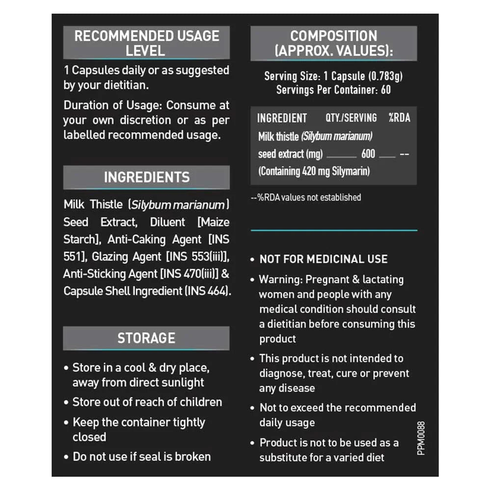 - With each capsule of MuscleBlaze Milk Thistle, you get 600mg of natural milk thistle extracts that are powerful antioxidants, helping the body flush out toxins more effectively