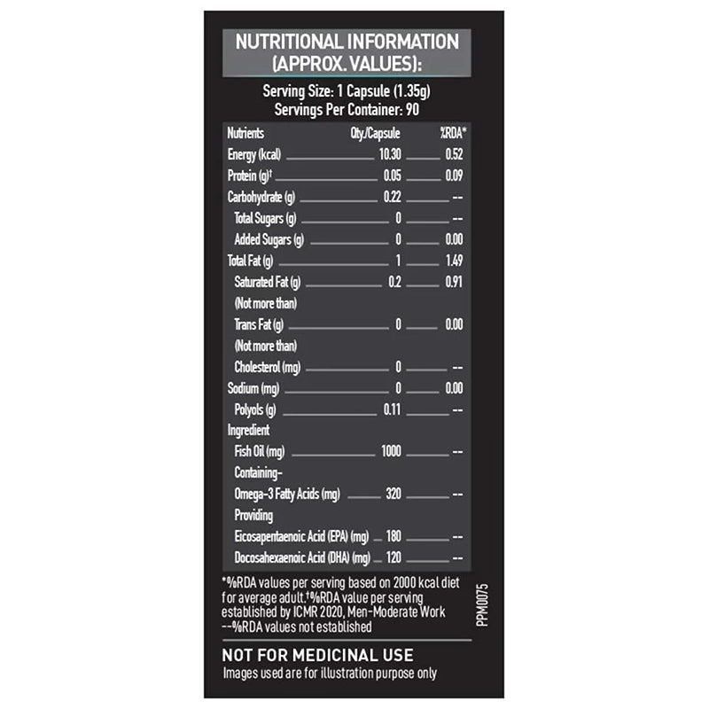 - MuscleBlaze Fish Oil 1000mg comes with accurate label claims with each soft gel providing 180mg EPA & 120mg DHA