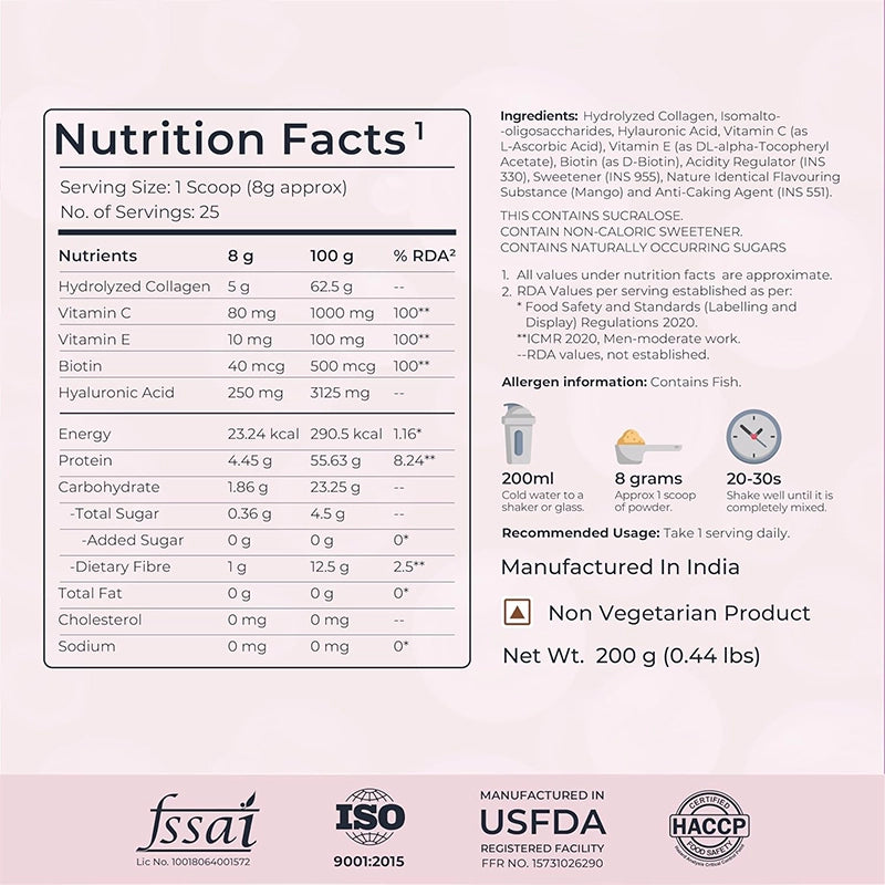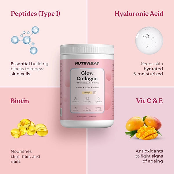 Nutrabay Korean Marine Glow Collagen Peptides with Hyaluronic Acid & Biotin for Skin Radiance - 200 gm (0.44 Lb)