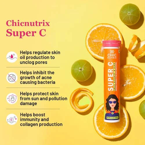As compared to your traditional Vitamin C tablets, Chicnutrix Super C is formulated to be gentle on the stomach, while ensuring the maximum absorption, and help you meet your daily Vitamin C requirement effortlessly. If you are struggling with issues like acne, dull skin, or pigmentation, then this is the best Vitamin C tablet for skin whitening and overall skin health.
