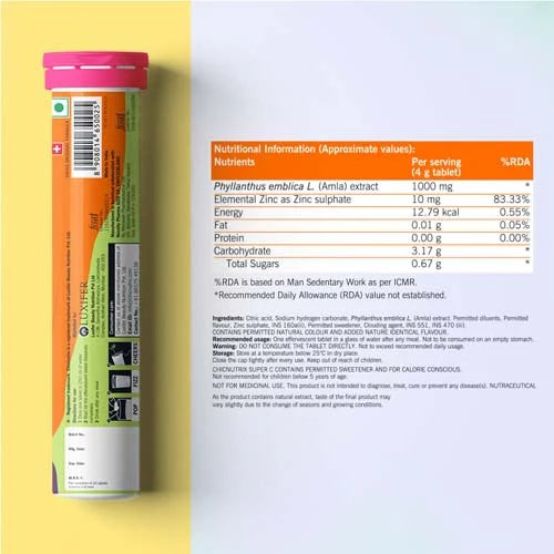 Natural Amla Extracts (Vitamin C) + Zinc for acne-free skin