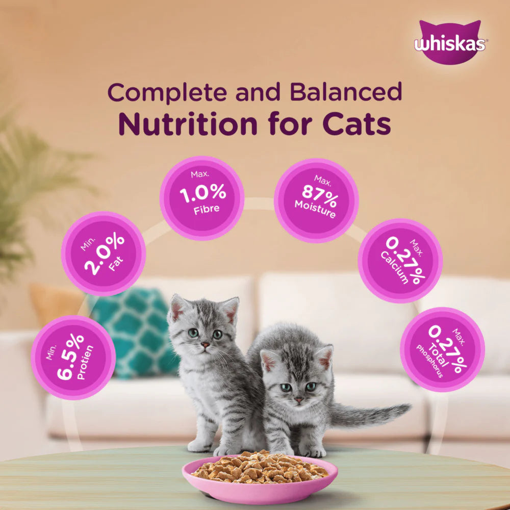 - Complete and Balanced Cat Food:Â Whiskas Tasty Mix Wet Cat Food provides 100% complete and balanced nutrition for kittens (2-12 months).